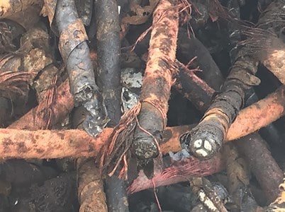 Er jernarmeret jordkabel med blyaluminium. Undgå jord ved indlevering, da det faktureres som affald.